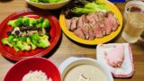そうめん、ぬか漬け(にんじん、きゅうり、なす)、天ぷら(えび、とりささみ、かぼちゃ、みょうが)。