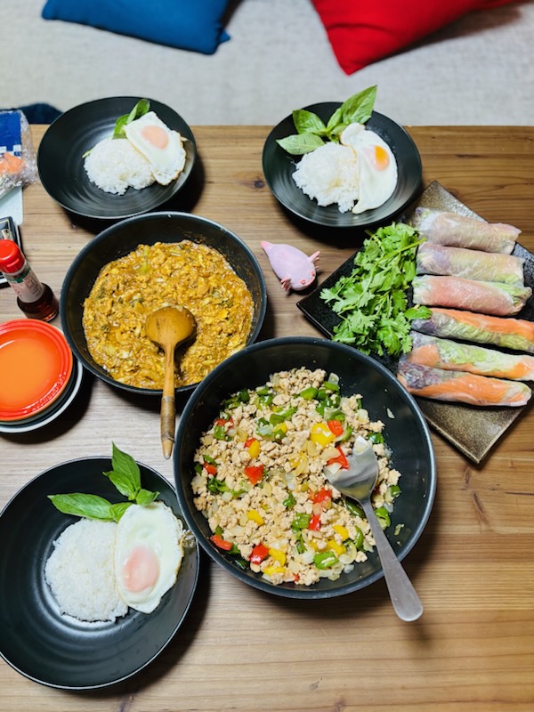 ガパオとプーパッポンカレーはセルフでかけて食べてくれい。